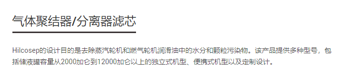 HILCO 气体聚结器/分离器滤芯系列